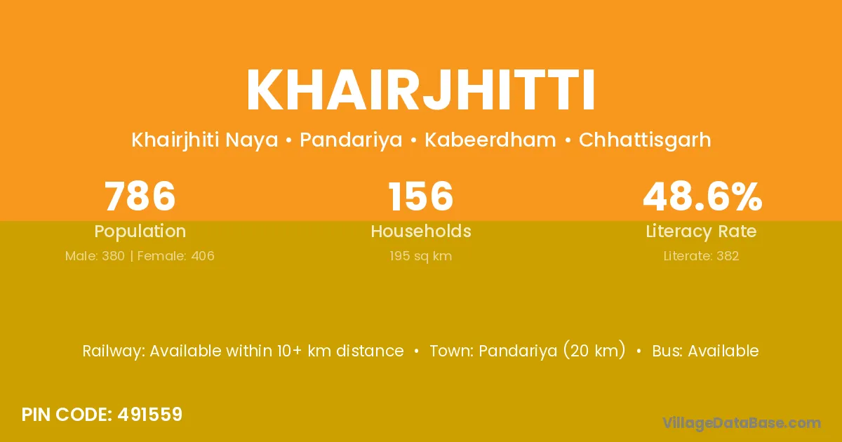 Pandariya (20 km) is the nearest town to Khairjhitti village for major economic activities and is located approximately 20 km away.