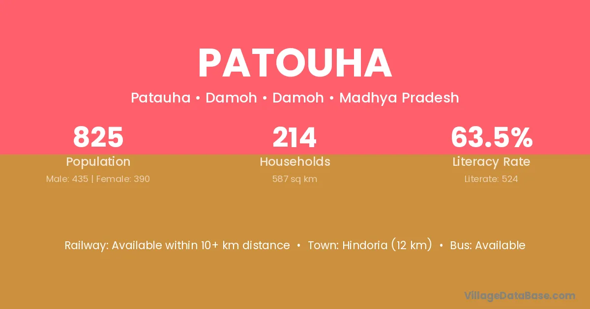 Pandariya (18 km) is the nearest town to Patouha village for major economic activities and is located approximately 18 km away.