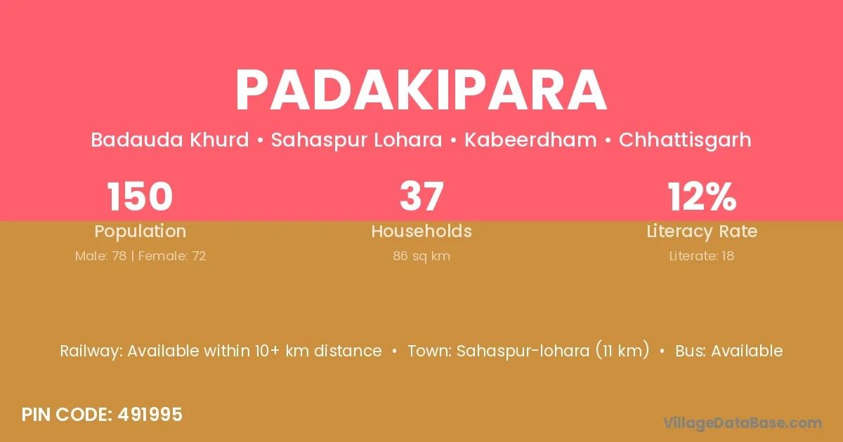 Sahaspur-lohara (11 km) is the nearest town to Padakipara village for major economic activities and is located approximately 11 km away.