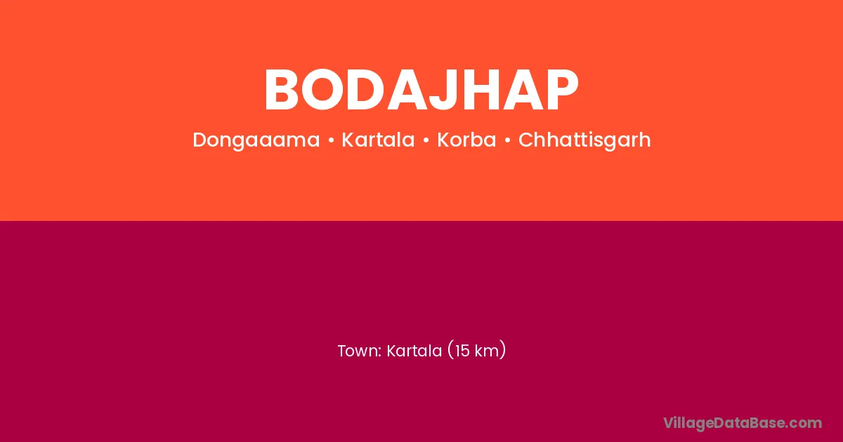 Kartala (15 km) is the nearest town to Bodajhap village for major economic activities and is located approximately 15 km away.