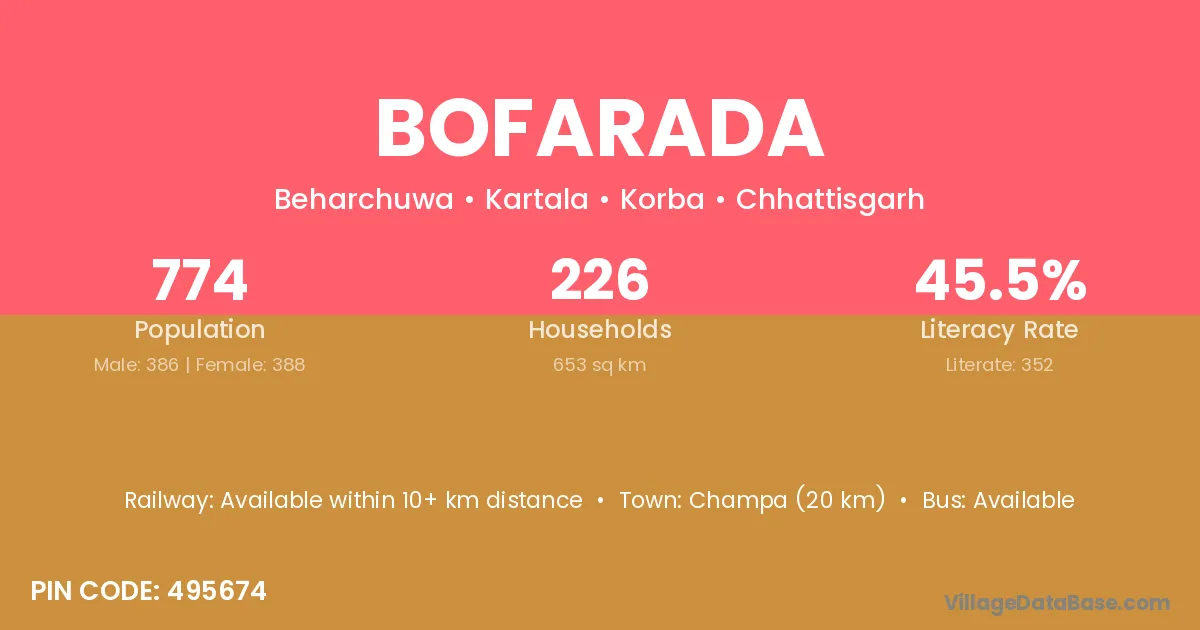 Bofarada village is located in the Kartala Tehsil of the Korba district in Chhattisgarh .