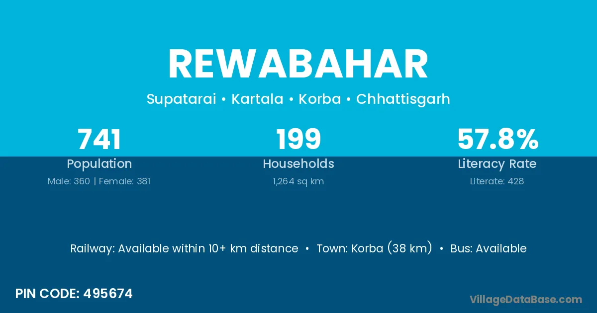 Korba (38 km) is the nearest town to Rewabahar village for major economic activities and is located approximately 38 km away.