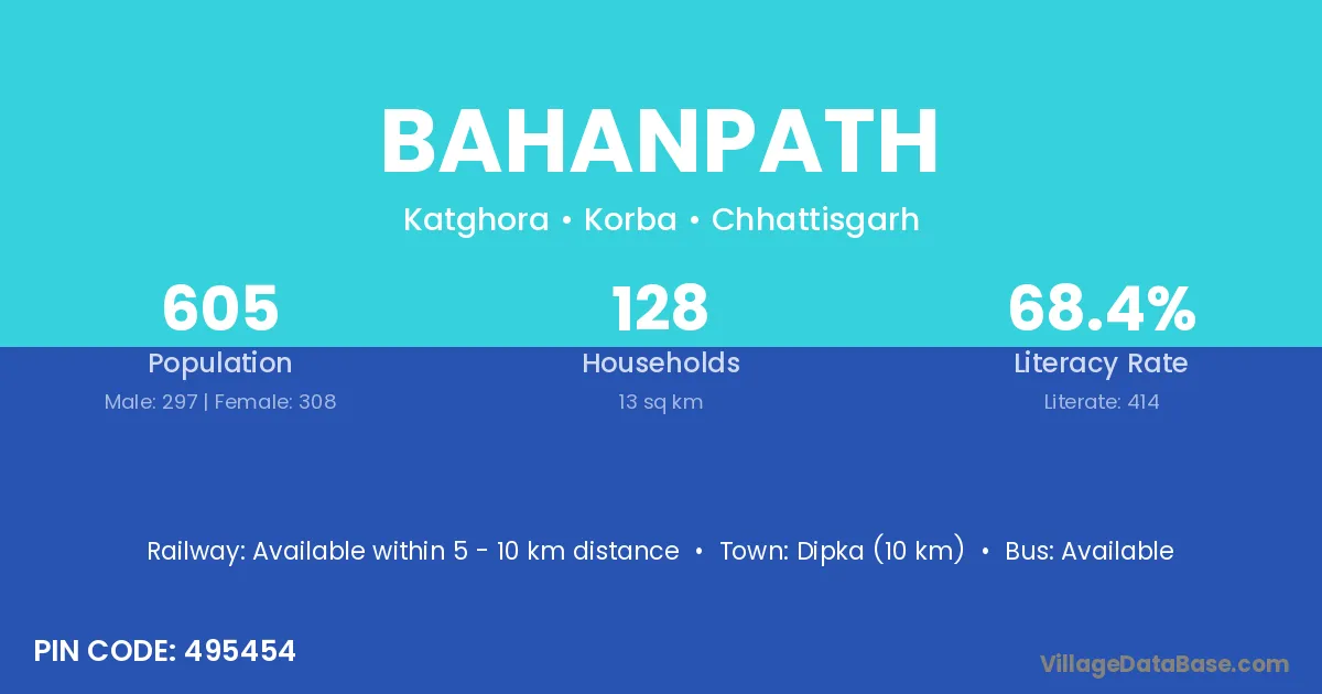 Dipka (10 km) is the nearest town to Bahanpath village for major economic activities and is located approximately 10 km away.