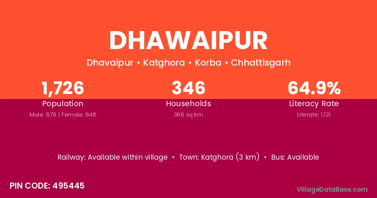 Katghora (3 km) is the nearest town to Dhawaipur village for major economic activities and is located approximately 3 km away.