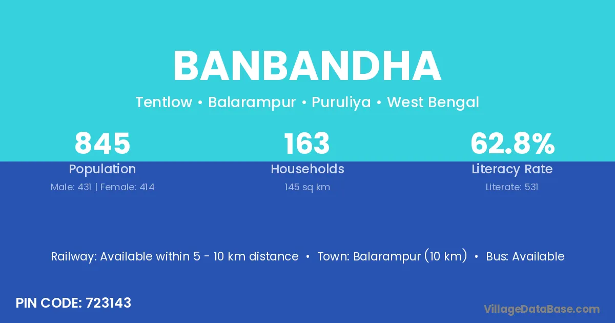 Pali (7 km) is the nearest town to Banbandha village for major economic activities and is located approximately 7 km away.