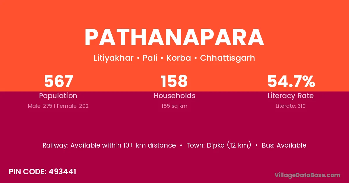 Pathanapara village has a total population of 567 people, of which 275 are males and 292 are females.