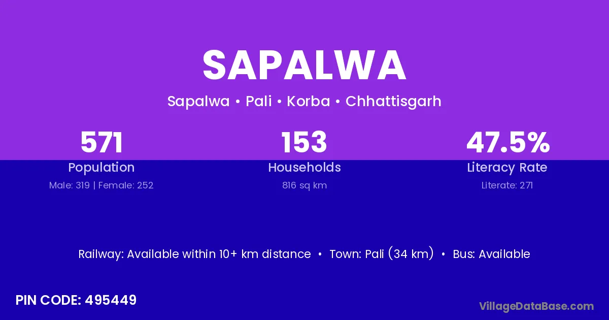 Sapalwa village is located in the Pali Tehsil of the Korba district in Chhattisgarh .