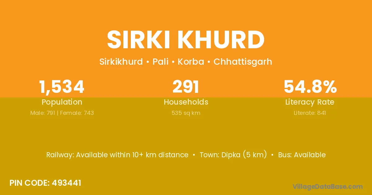 According to Census 2011 information, the village code of Sirki Khurd village is 493441.