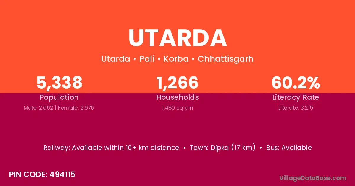 According to Census 2011 information, the village code of Utarda village is 494115.