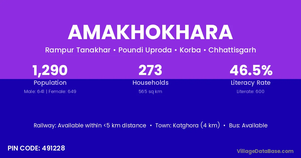 Katghora (4 km) is the nearest town to Amakhokhara village for major economic activities and is located approximately 4 km away.