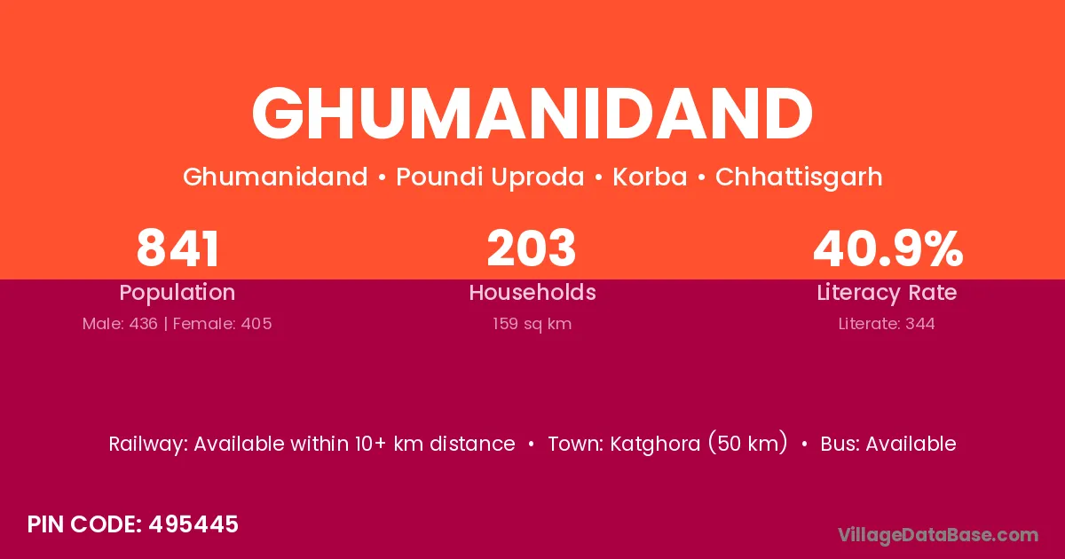 According to Census 2011 information, the village code of Ghumanidand village is 495445.