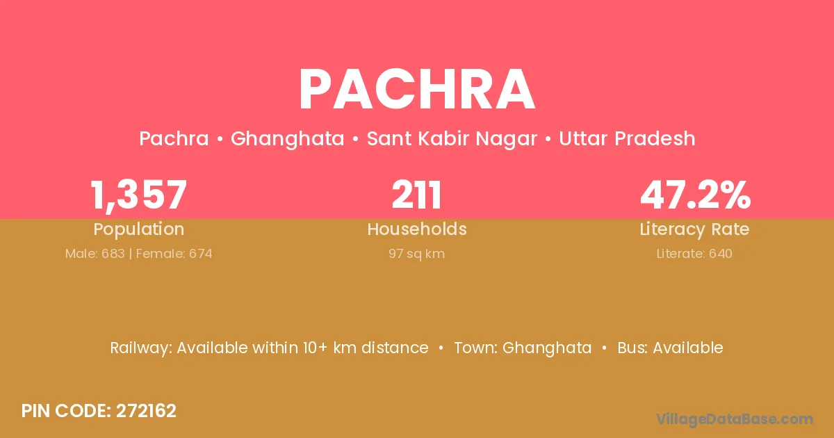 Katghora (44 km) is the nearest town to Pachra village for major economic activities and is located approximately 44 km away.