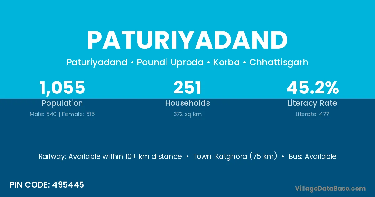 Paturiyadand village has a total population of 1,055 people, of which 540 are males and 515 are females.