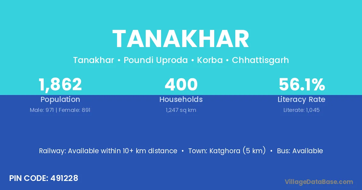 Katghora (5 km) is the nearest town to Tanakhar village for major economic activities and is located approximately 5 km away.