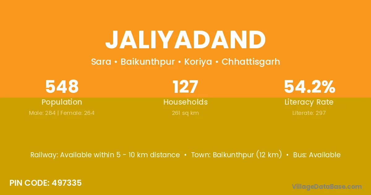 Baikunthpur (12 km) is the nearest town to Jaliyadand village for major economic activities and is located approximately 12 km away.