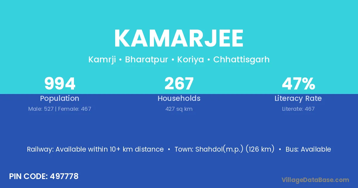 Kamarjee village is located in the Bharatpur Tehsil of the Koriya district in Chhattisgarh .