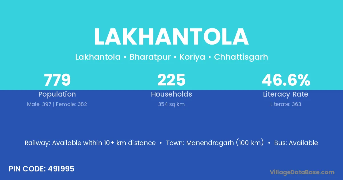 Manendragarh (100 km) is the nearest town to Lakhantola village for major economic activities and is located approximately 100 km away.