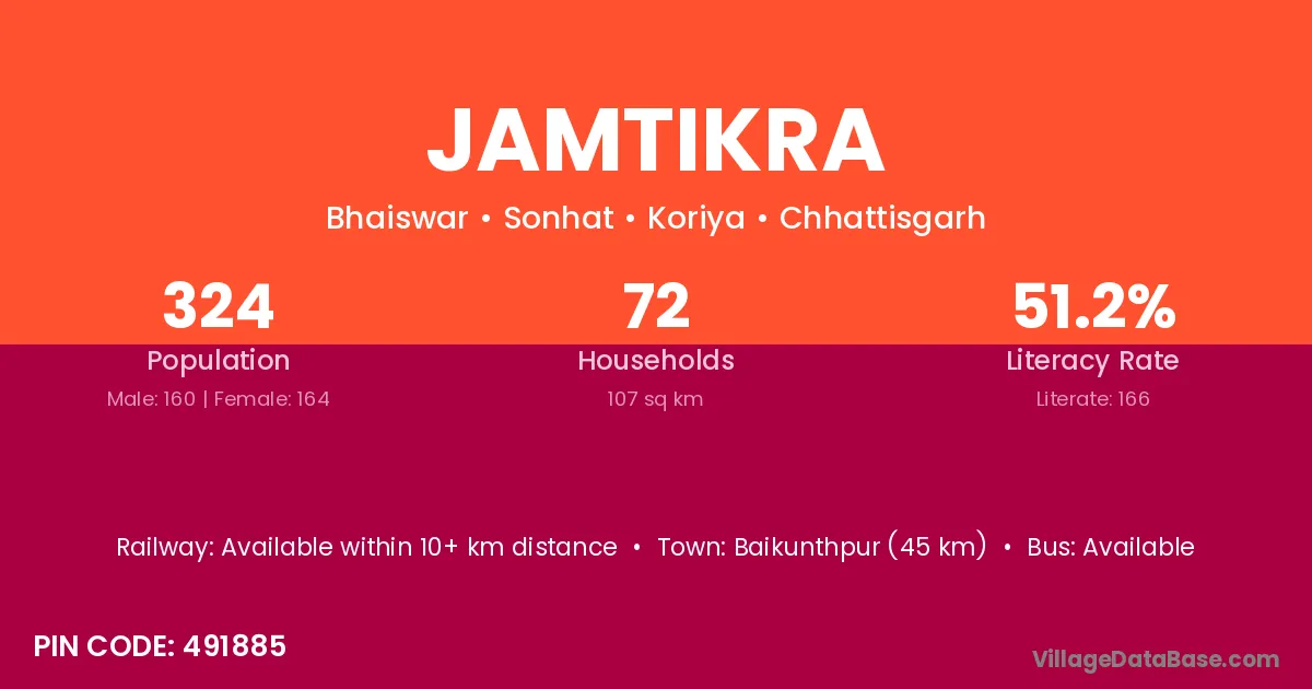 Jamtikra village has a total population of 324 people, of which 160 are males and 164 are females.