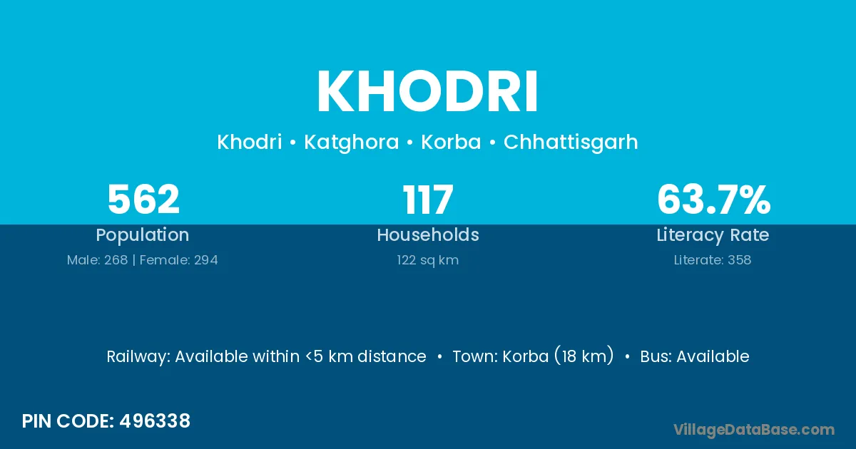 Baikunthpur (44 km) is the nearest town to Khodri village for major economic activities and is located approximately 44 km away.