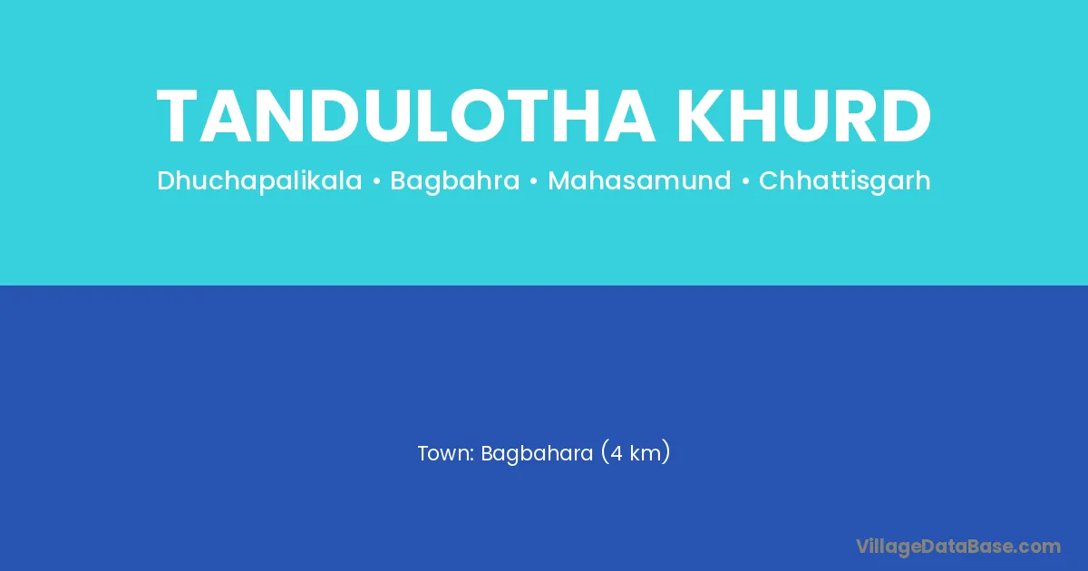 Bagbahara (4 km) is the nearest town to Tandulotha Khurd village for major economic activities and is located approximately 4 km away.