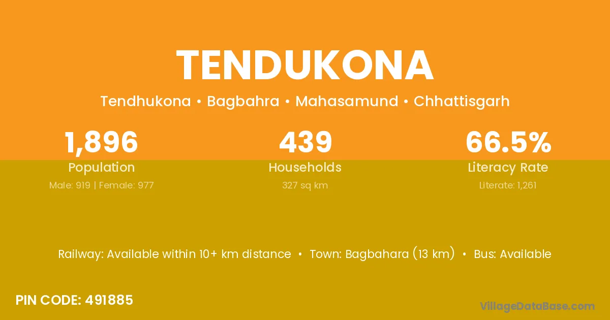 According to Census 2011 information, the village code of Tendukona village is 491885.