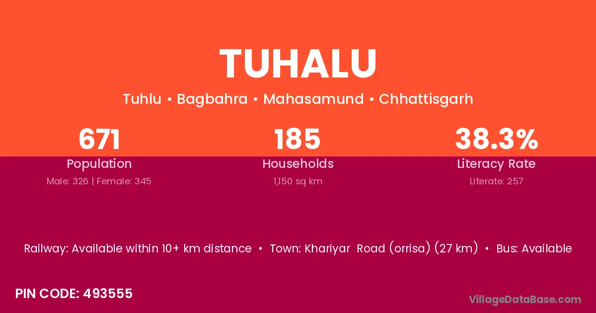 Khariyar Road (orrisa) (27 km) is the nearest town to Tuhalu village for major economic activities and is located approximately 27 km away.
