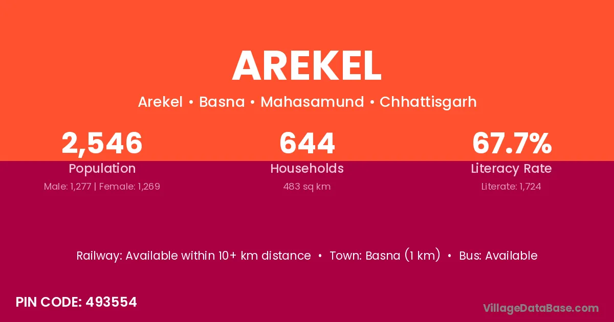 Arekel village is located in the Basna Tehsil of the Mahasamund district in Chhattisgarh .