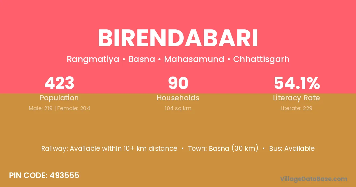 According to Census 2011 information, the village code of Birendabari village is 493555.