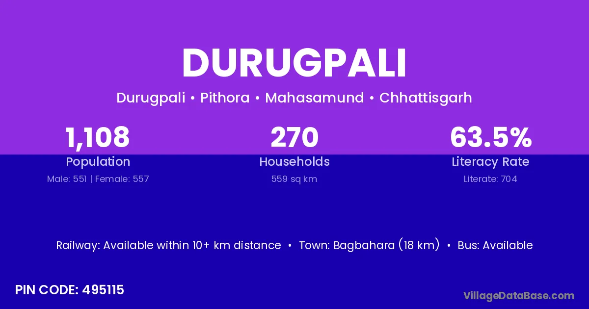 Basna (8 km) is the nearest town to Durugpali village for major economic activities and is located approximately 8 km away.