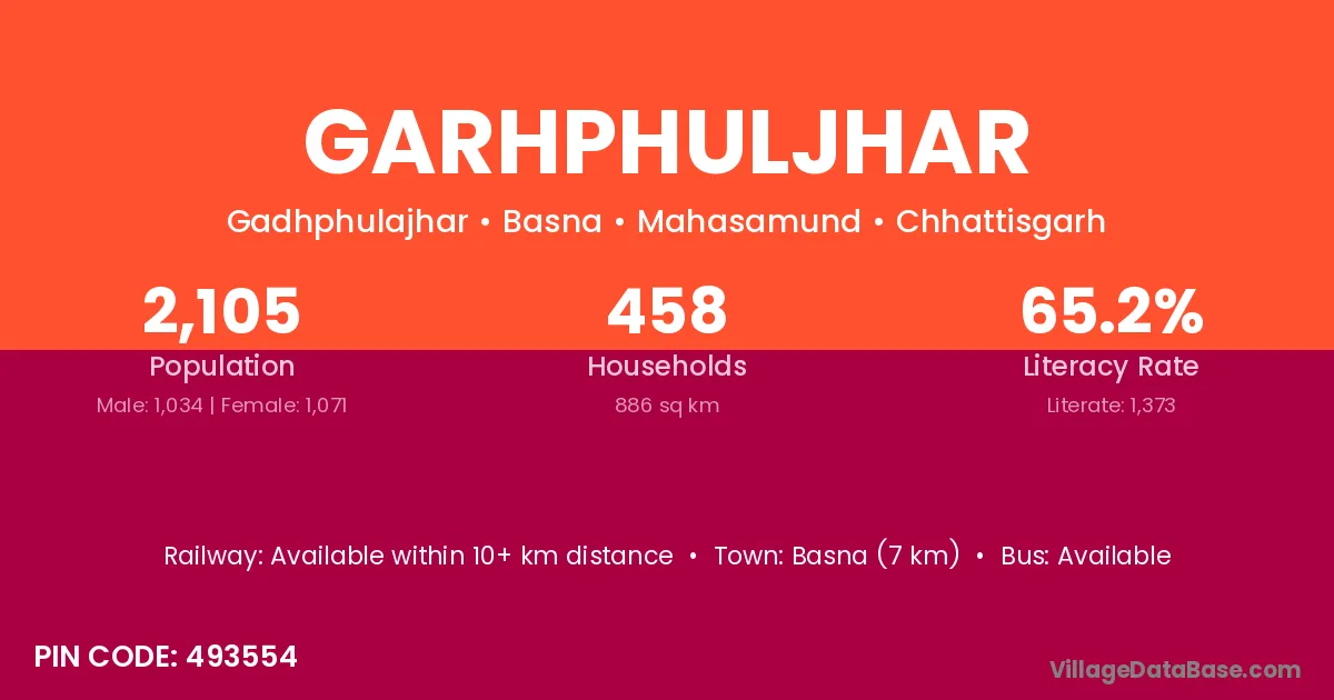 Basna (7 km) is the nearest town to Garhphuljhar village for major economic activities and is located approximately 7 km away.
