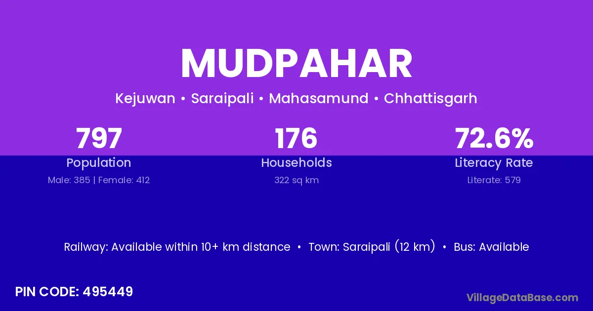 According to Census 2011 information, the village code of Mudpahar village is 497339.