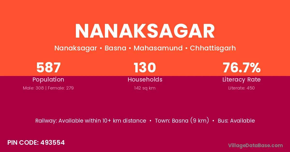 Basna (9 km) is the nearest town to Nanaksagar village for major economic activities and is located approximately 9 km away.