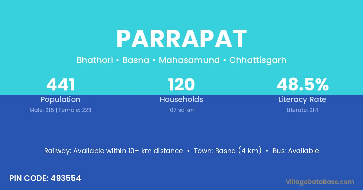 Parrapat village is located in the Basna Tehsil of the Mahasamund district in Chhattisgarh .
