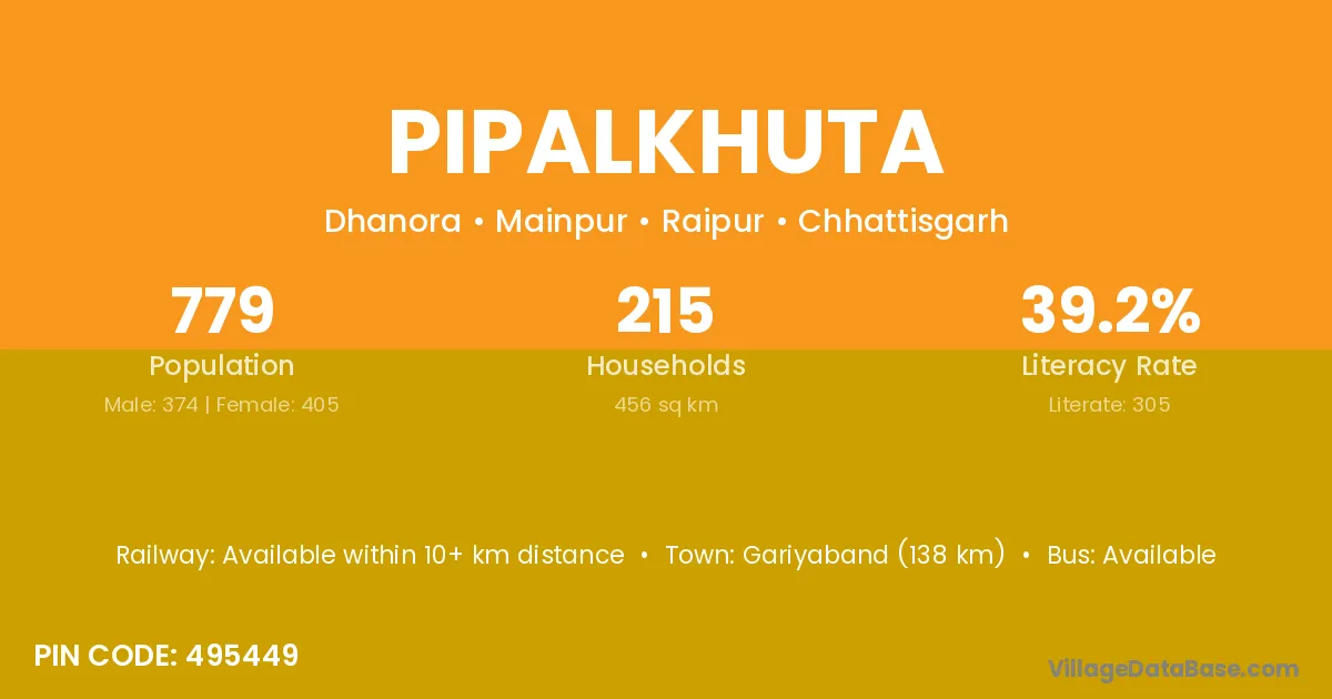 According to Census 2011 information, the village code of Pipalkhuta village is 493554.