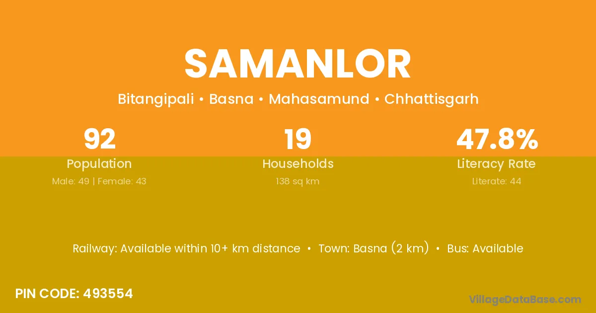 Basna (2 km) is the nearest town to Samanlor village for major economic activities and is located approximately 2 km away.