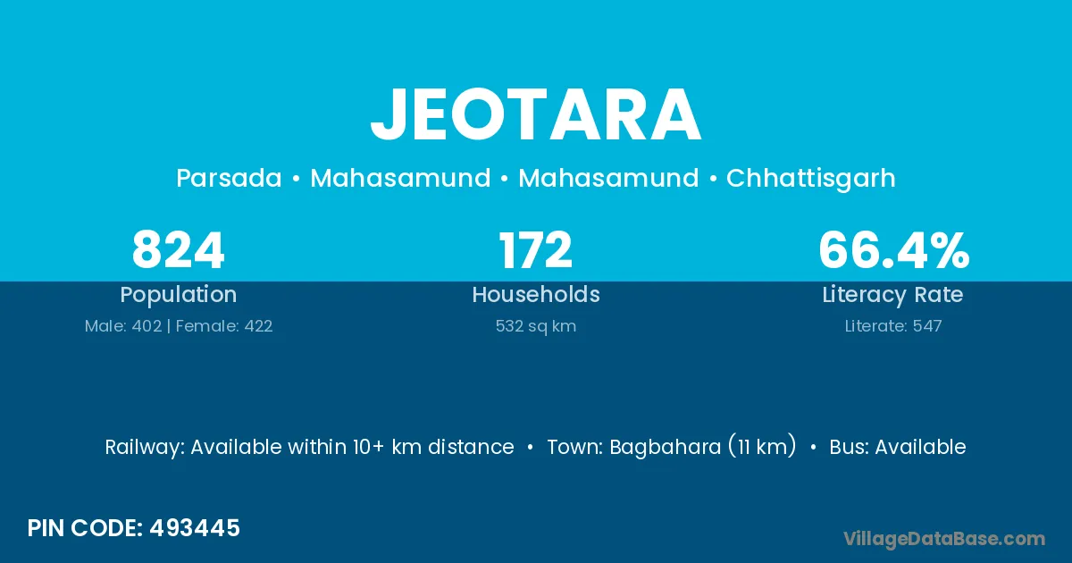 Bagbahara (11 km) is the nearest town to Jeotara village for major economic activities and is located approximately 11 km away.