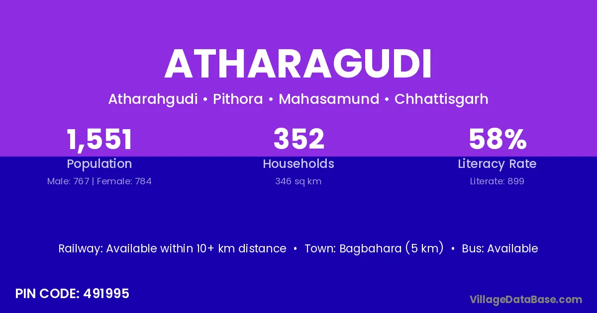 Bagbahara (5 km) is the nearest town to Atharagudi village for major economic activities and is located approximately 5 km away.