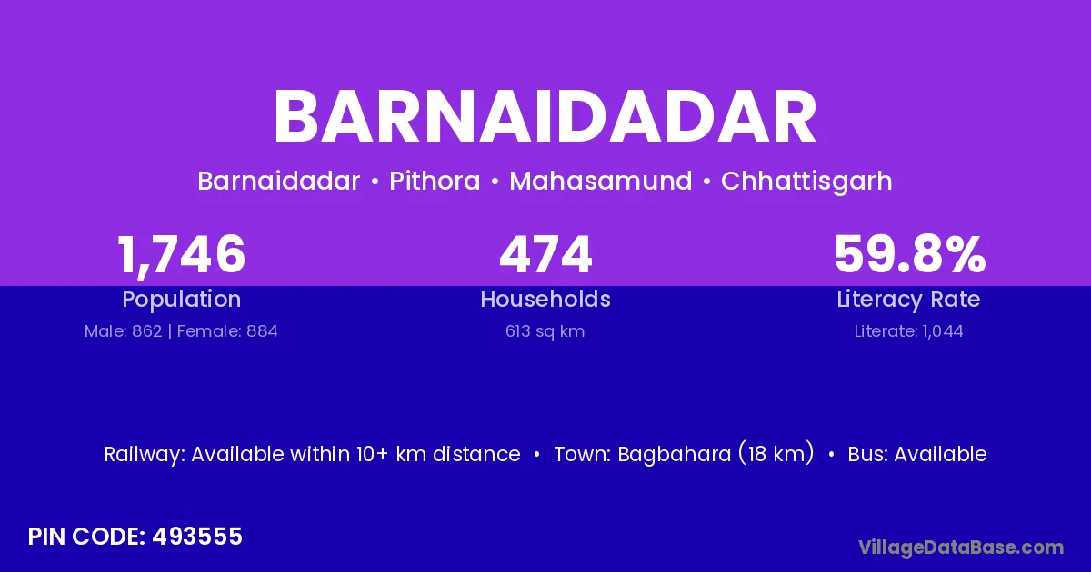 Bagbahara (18 km) is the nearest town to Barnaidadar village for major economic activities and is located approximately 18 km away.