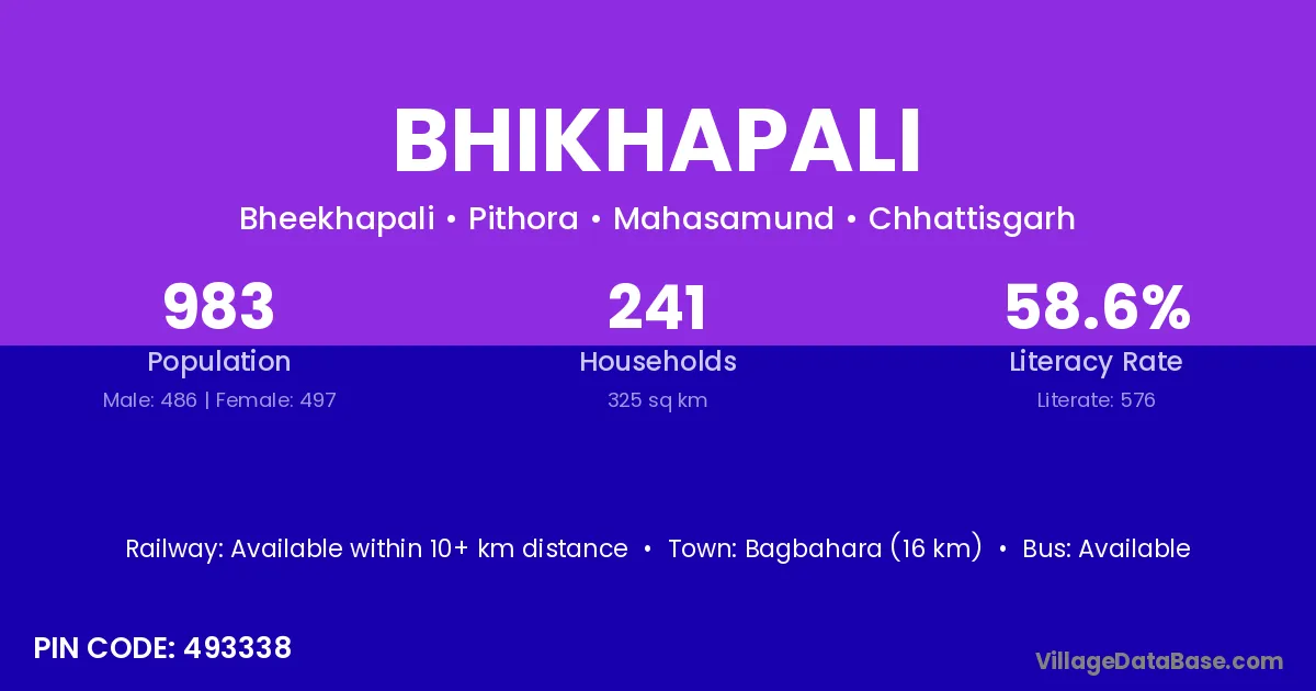 Bhikhapali village has a total population of 983 people, of which 486 are males and 497 are females.