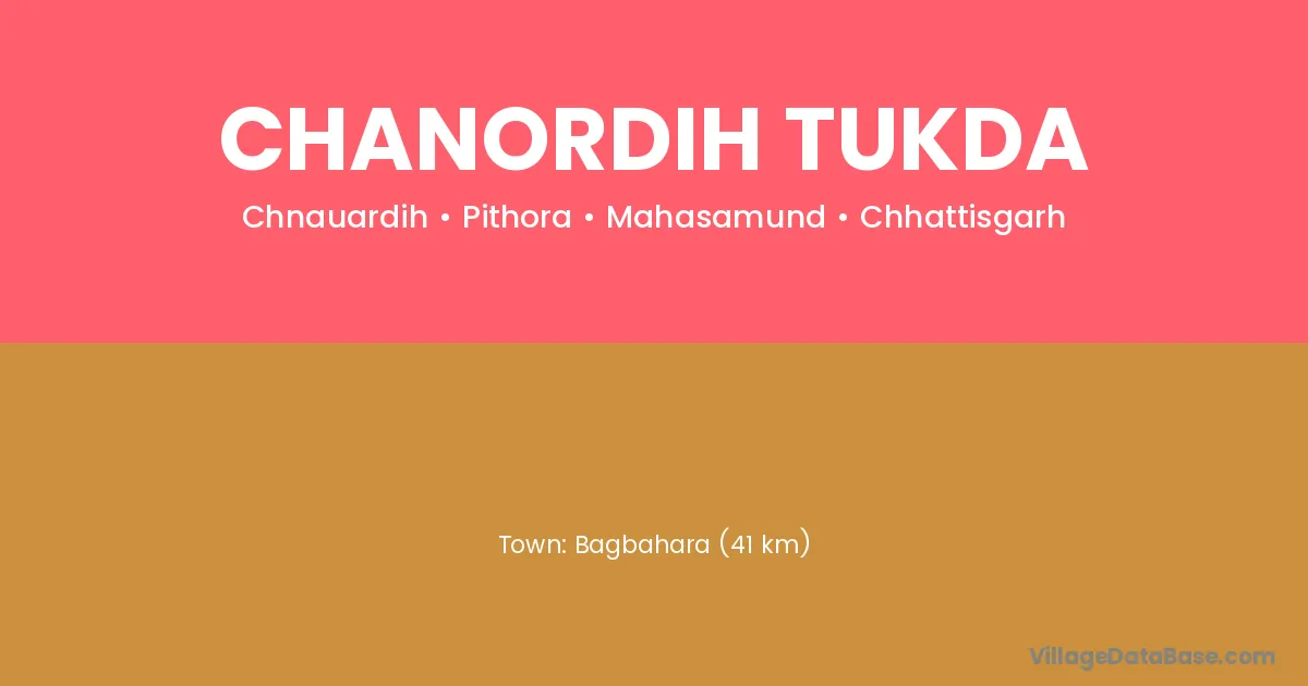 Bagbahara (41 km) is the nearest town to Chanordih Tukda village for major economic activities and is located approximately 41 km away.