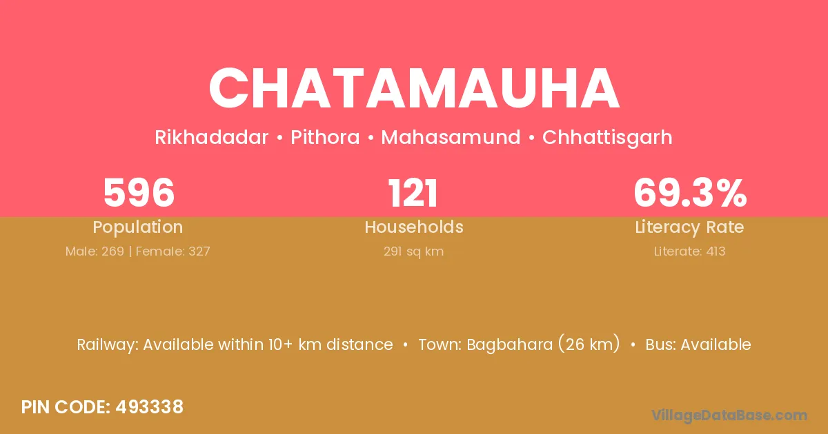 According to Census 2011 information, the village code of Chatamauha village is 493338.