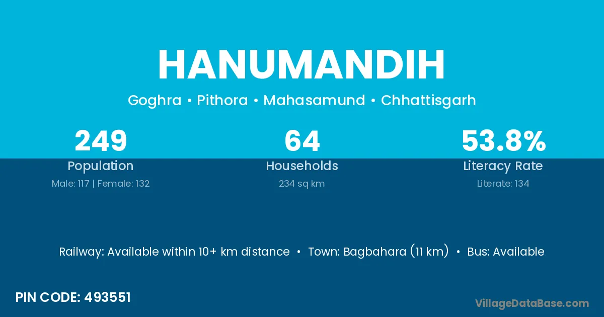 Bagbahara (11 km) is the nearest town to Hanumandih village for major economic activities and is located approximately 11 km away.