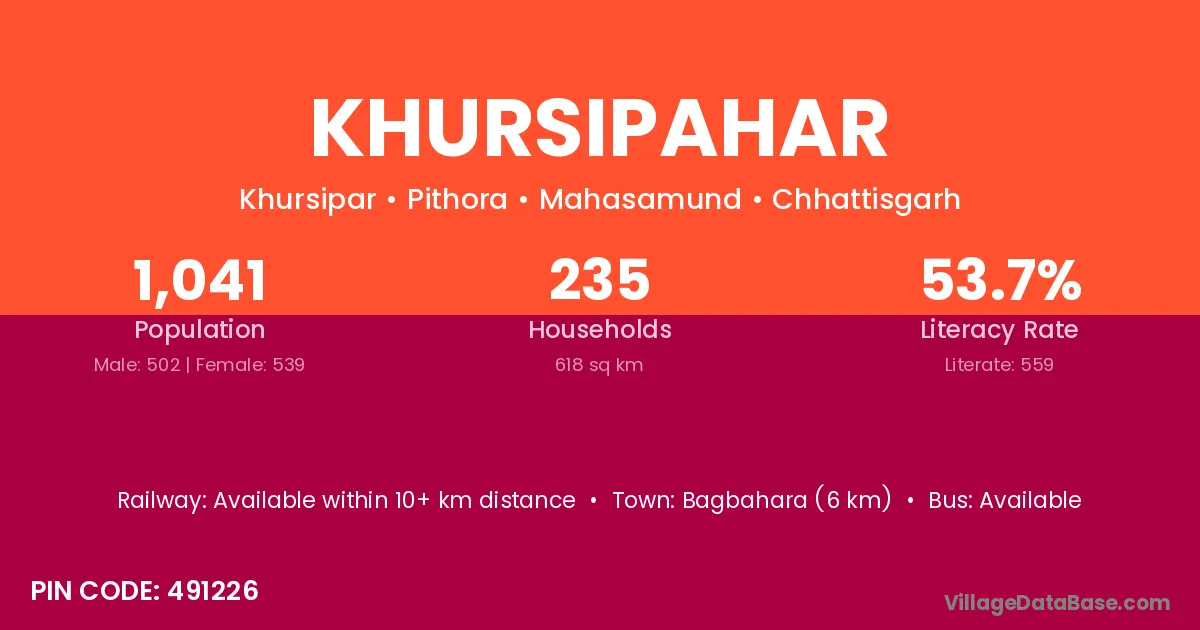 According to Census 2011 information, the village code of Khursipahar village is 491226.