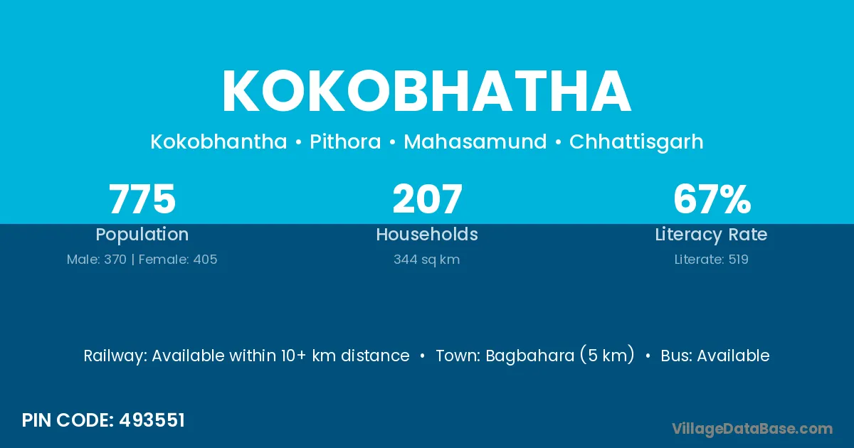 According to Census 2011 information, the village code of Kokobhatha village is 493551.