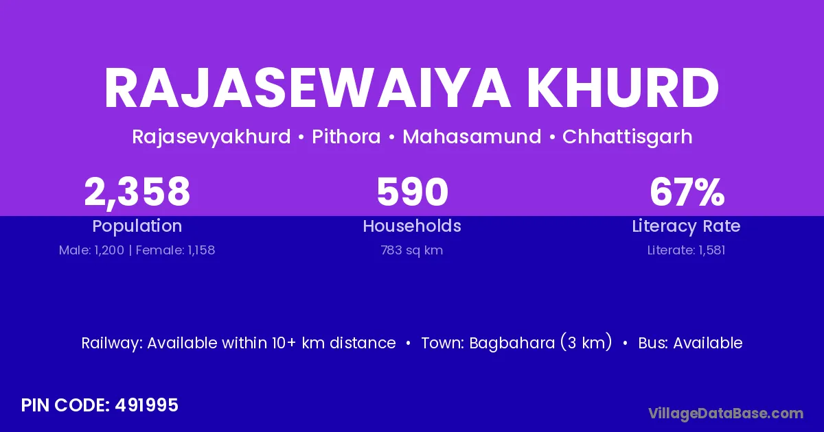 According to Census 2011 information, the village code of Rajasewaiya Khurd village is 491995.