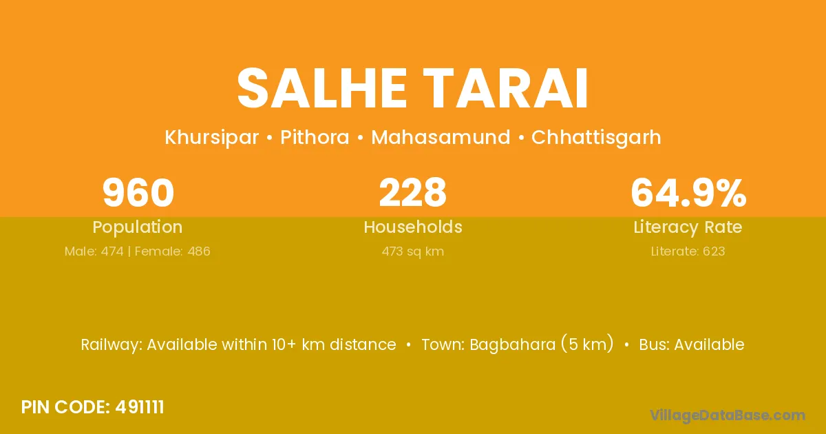 Salhe Tarai village has a total population of 960 people, of which 474 are males and 486 are females.