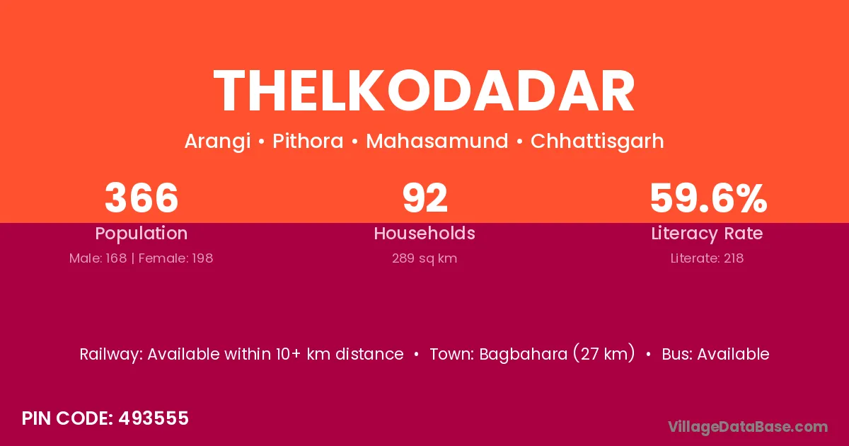 According to Census 2011 information, the village code of Thelkodadar village is 493555.