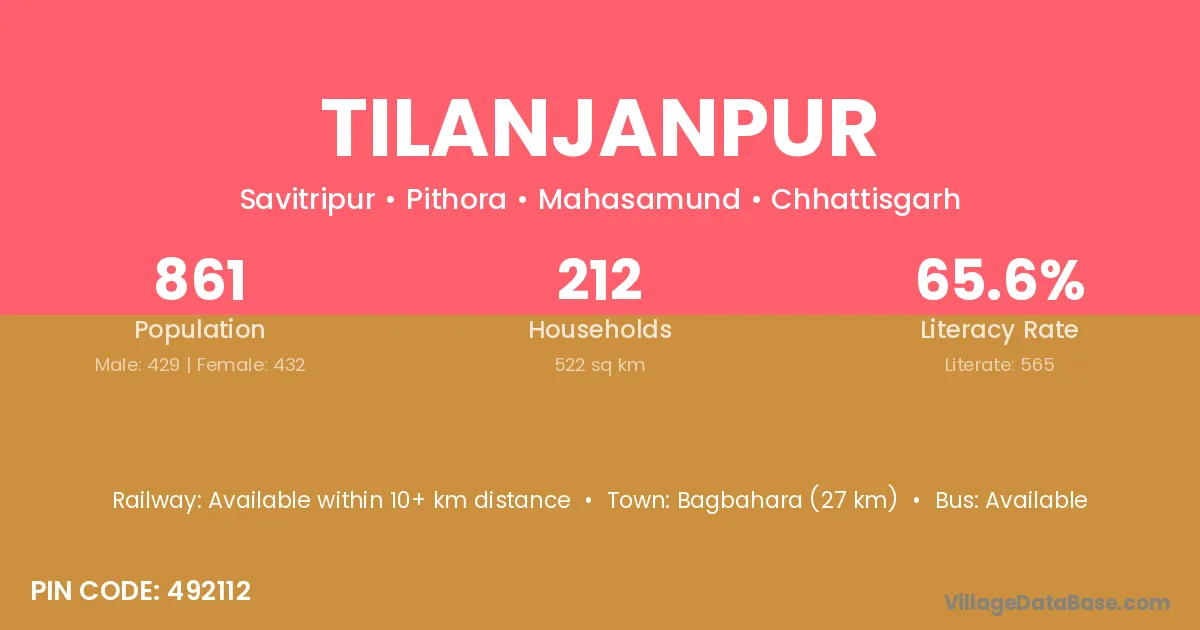 Tilanjanpur village has a total population of 861 people, of which 429 are males and 432 are females.
