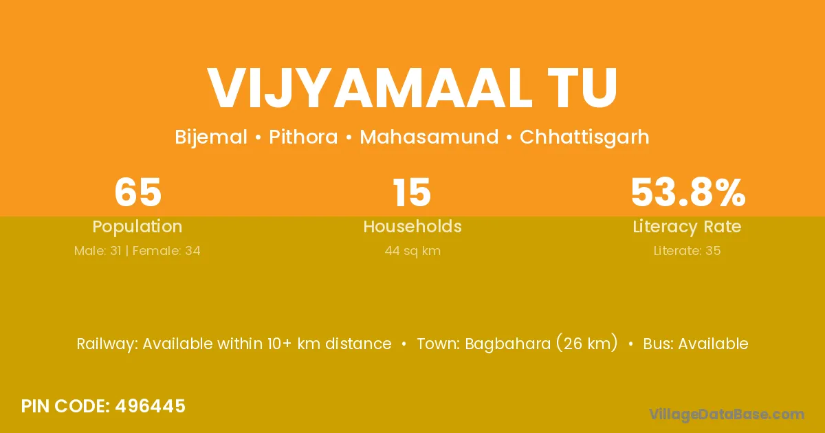 Vijyamaal Tu village has a total population of 65 people, of which 31 are males and 34 are females.