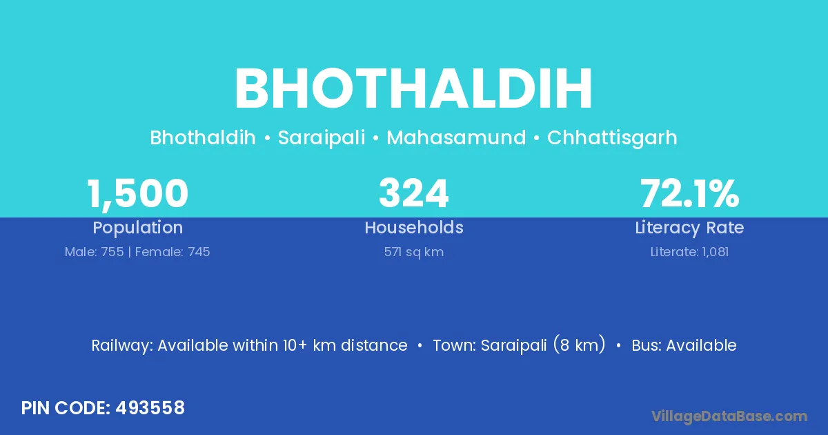 Saraipali (8 km) is the nearest town to Bhothaldih village for major economic activities and is located approximately 8 km away.